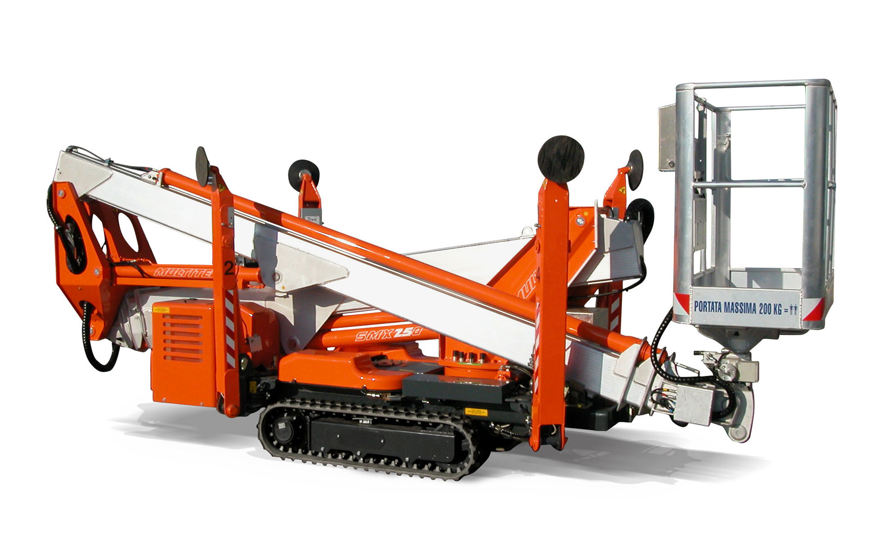Lo sbraccio orizzontale massimo 11,60 m consente la portata in cesta di 80 kg e di 250 kg con lo sbraccio di 7,90 m.